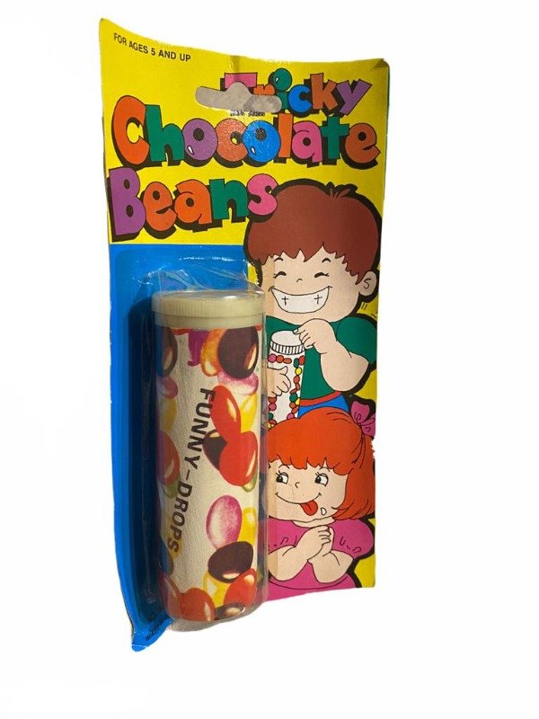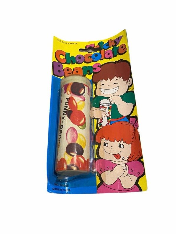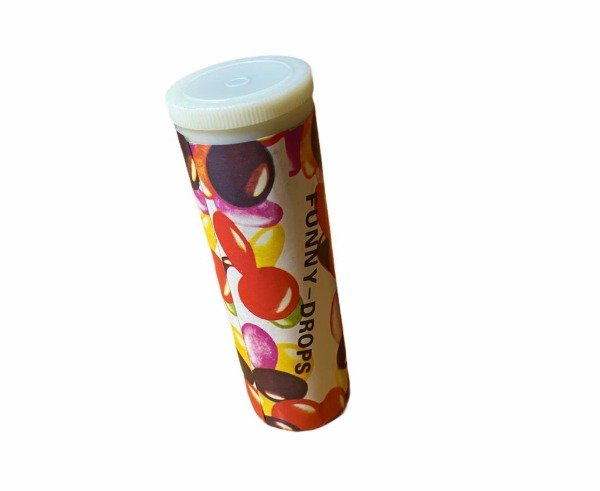 Frasco de caramelo que al abrirlo salta un resorte. Buenísimo para hacer bromas.