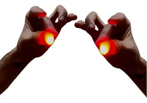 Dedos pulgares de ambas manos con luz. Truco de magia de luz en el pulgar.