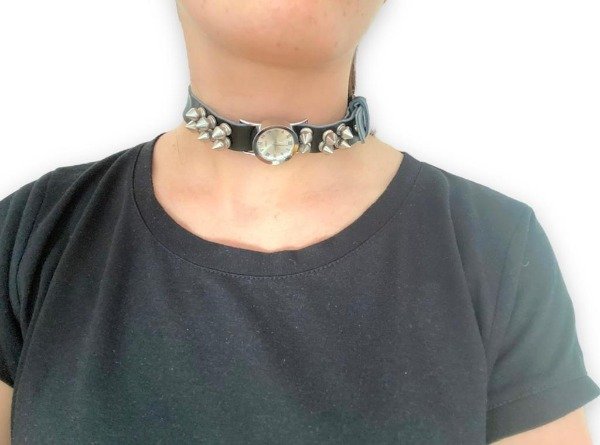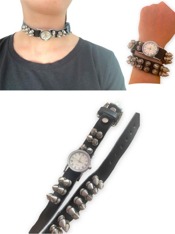 RELOJ GARGANTILLA COLLAR ECO-CUERO CON TACHAS