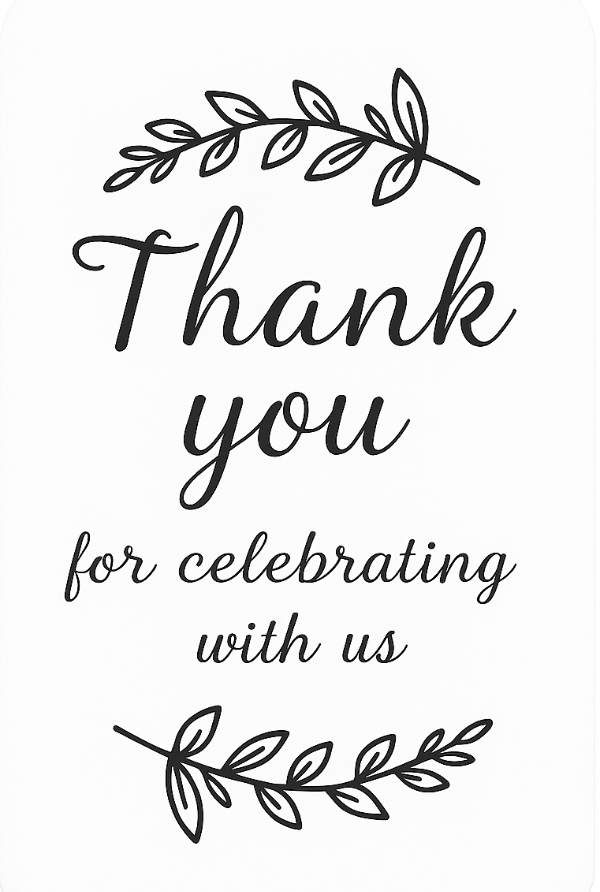 50 bolsitas con cordón de organza, 50 tarjetas kraft de papel "Thank you for celebrating with us"